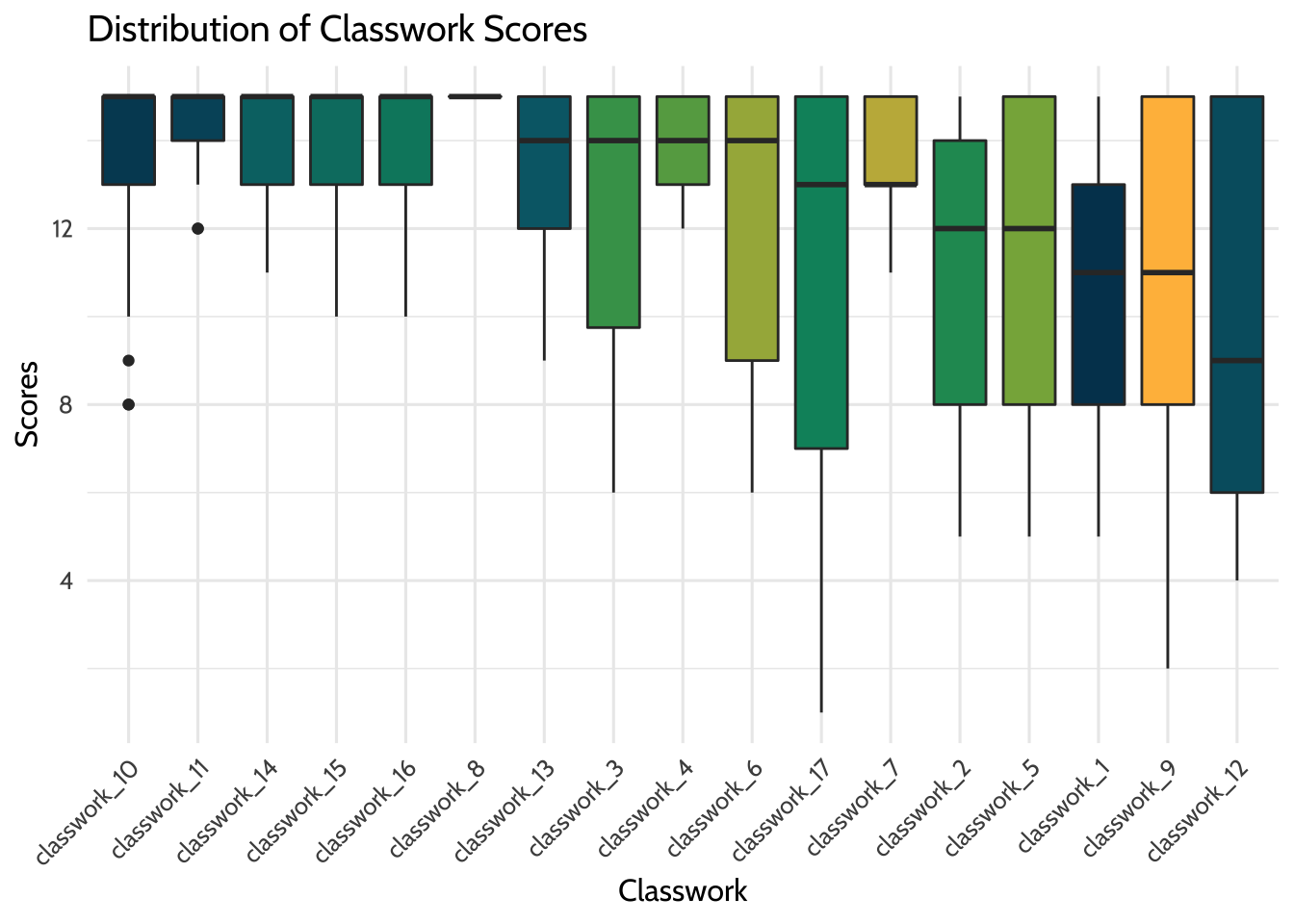 a visualization to explore scores from student classwork assignments.