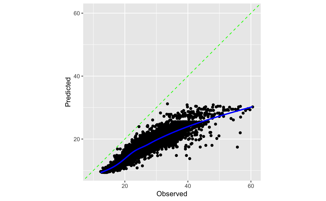 Let’s deliberately define a regression model that has poor predicted values: a boosted tree with only three ensemble members.